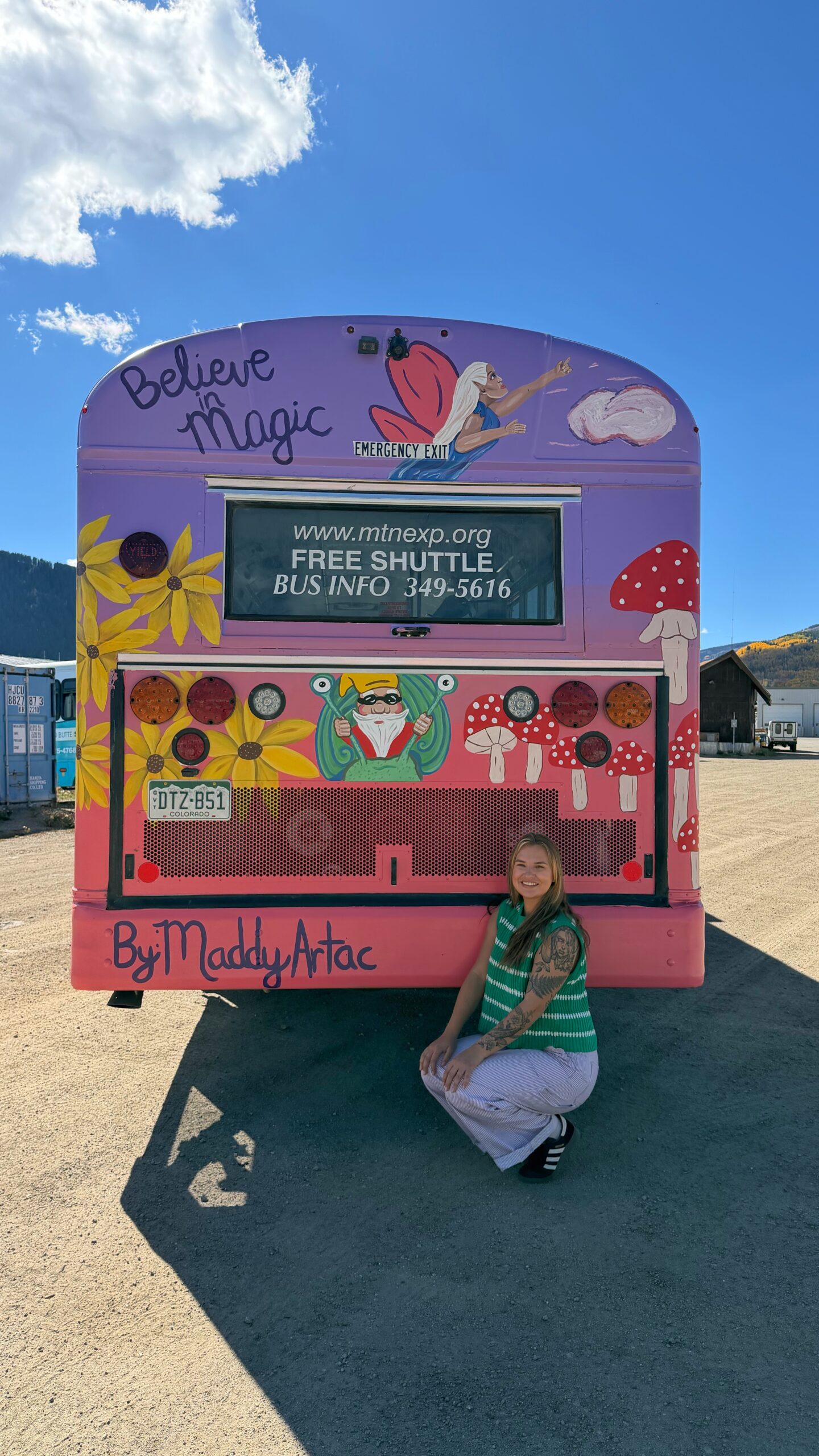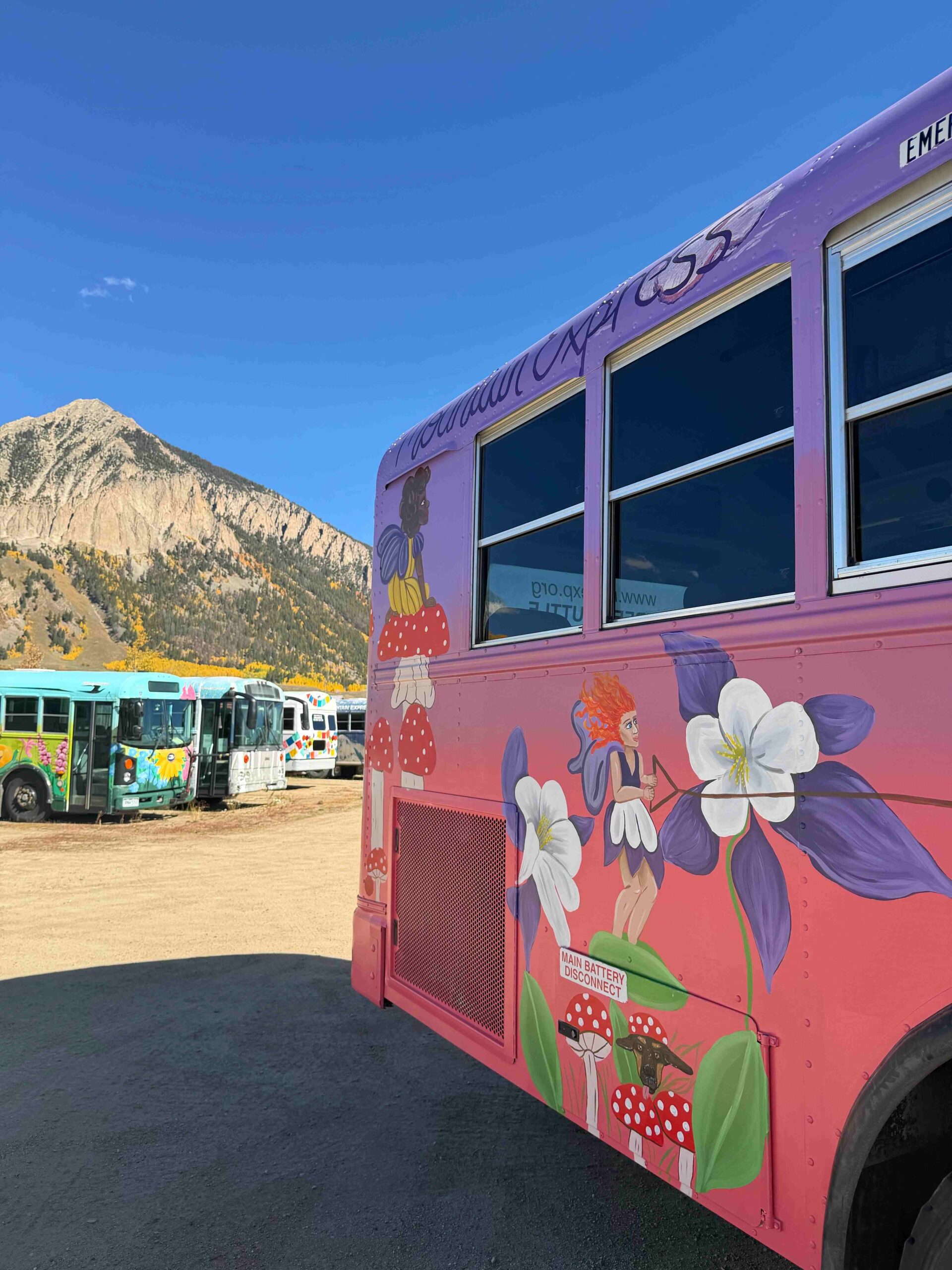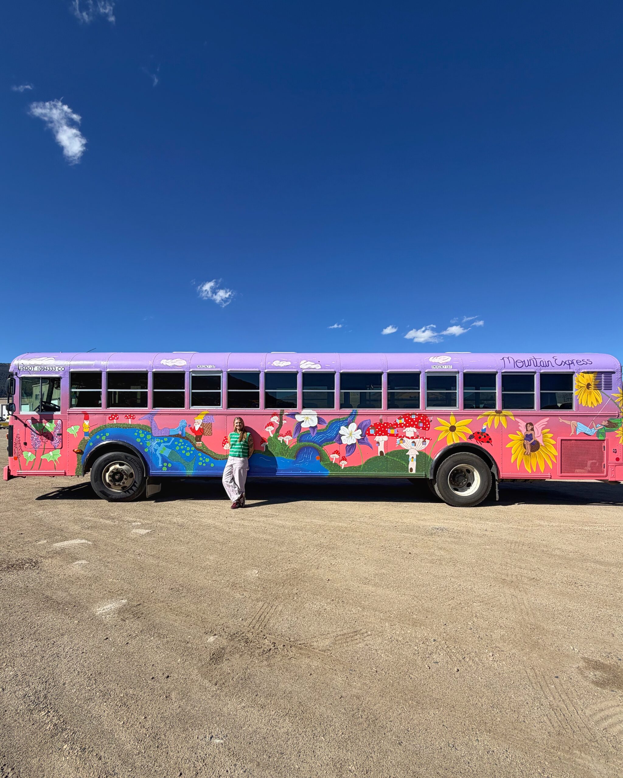 The Magic Bus was painted in 2025 by artist Madeline Artac. The inspiration for the bus comes from the playful and childlike atmosphere of Crested Butte and it’s community; encouraging everyone to still believe in magic and to have a childlike sense of wonder for the world.